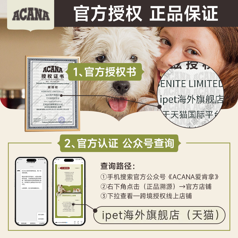 您的位置: ACANA爱肯拿减肥轻体犬粮无谷低卡低脂鸡肉进口通用型狗粮11.3kg