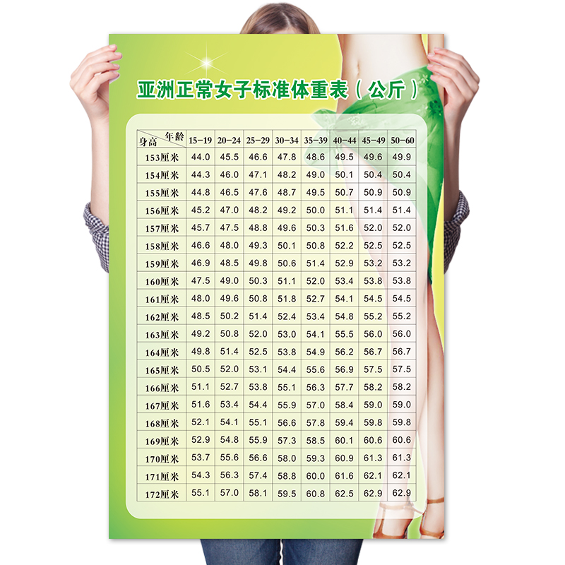 淘宝天猫美容院减肥美体微整形纹绣装饰壁画海报挂图定制男女子标准体重表优惠券折扣价格–彩云间