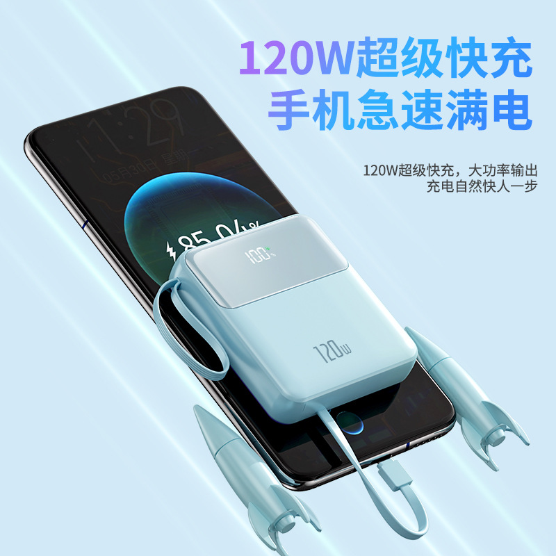 > 超级快充迷你数显充电宝大容量20000毫安自带线礼品移动电源