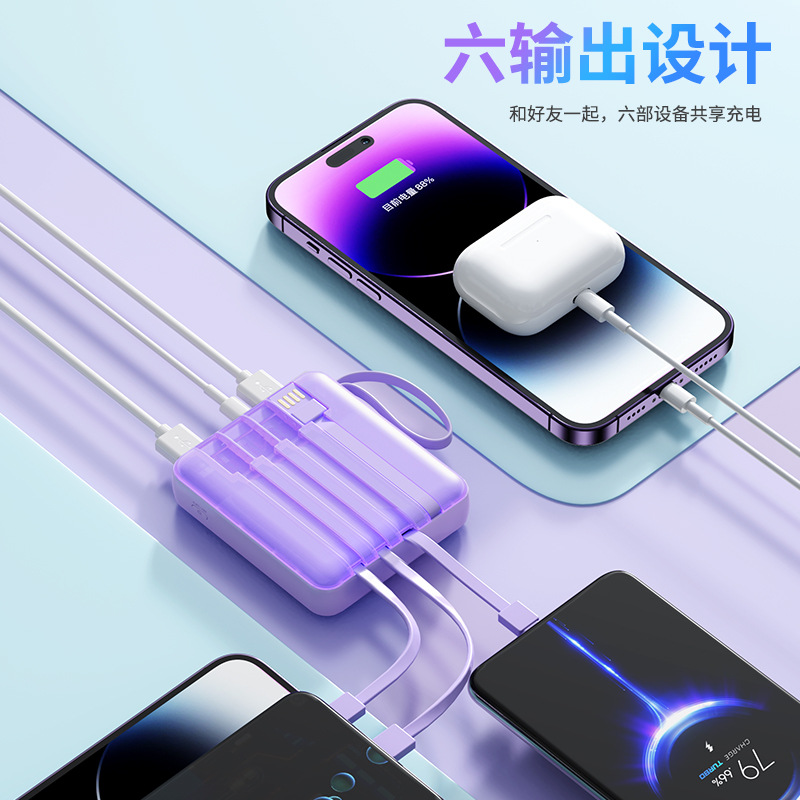 【国家3C认证可上飞机】用维充电宝自带四线大容量10000毫安超薄小巧迷你标识移动电源10w快充低功率适用苹果