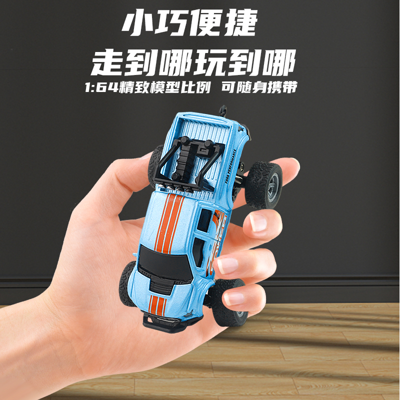 您的位置: 桌面迷你合金遥控车RC 2.4G充电越野车1:64大脚车炫酷灯光减震车