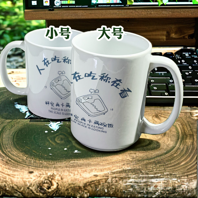 您的位置: 文字人在吃称在看减肥励志趣味变色杯办公室小众马克杯子陶瓷水杯