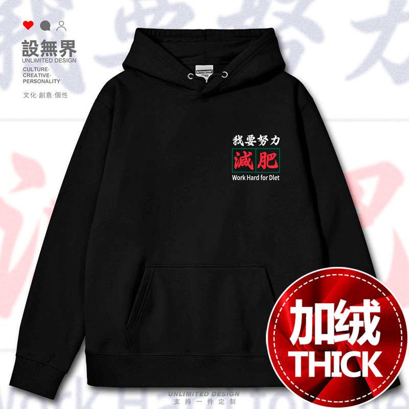 您的位置: 设无界我要努力减肥励志文字简约连帽卫衣男女个性创意套头帽衫