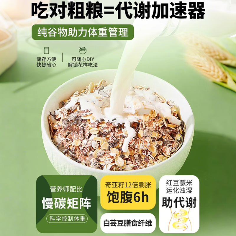 燕麦片无糖精非低脂女士减肥专用代餐麦片脱脂瘦身提升代谢正品