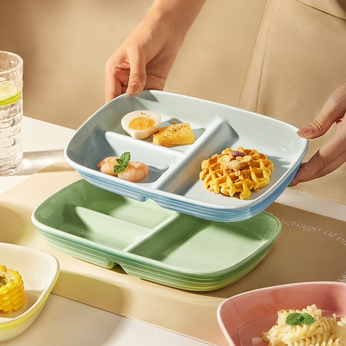 211减脂分格餐盘大人减肥专用儿童定量分餐盘家用轻食陶瓷早餐盘