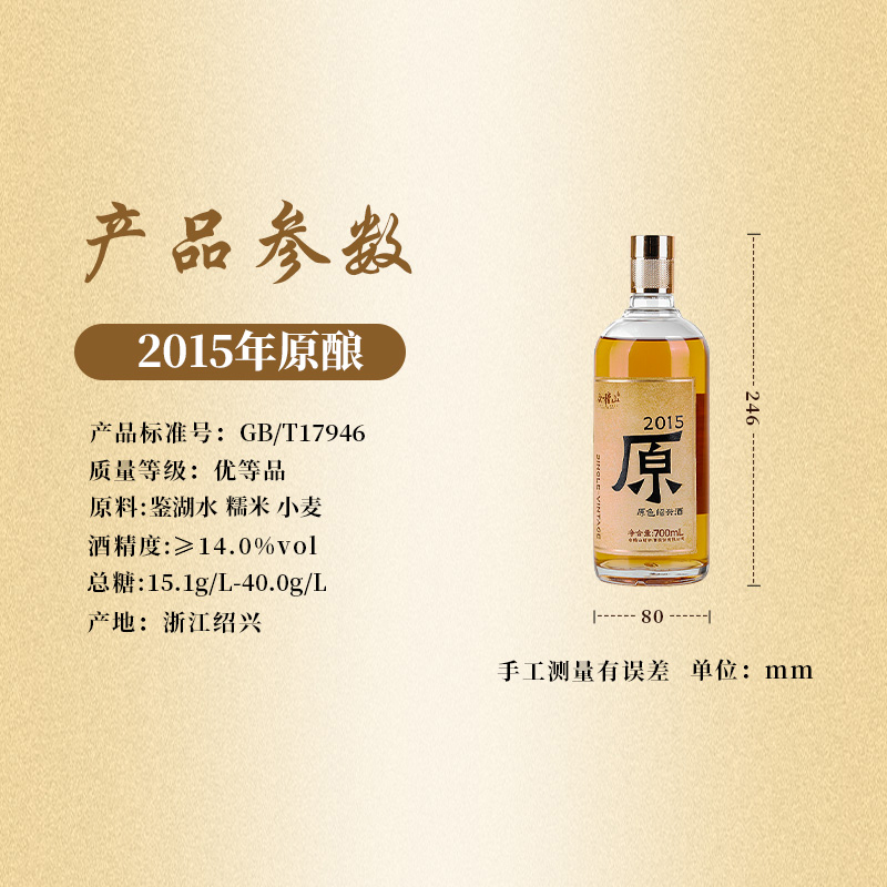 您的位置: 会稽山绍兴黄酒 2015年大雪冬酿原色原酒700ml*2无焦糖色黄酒礼盒