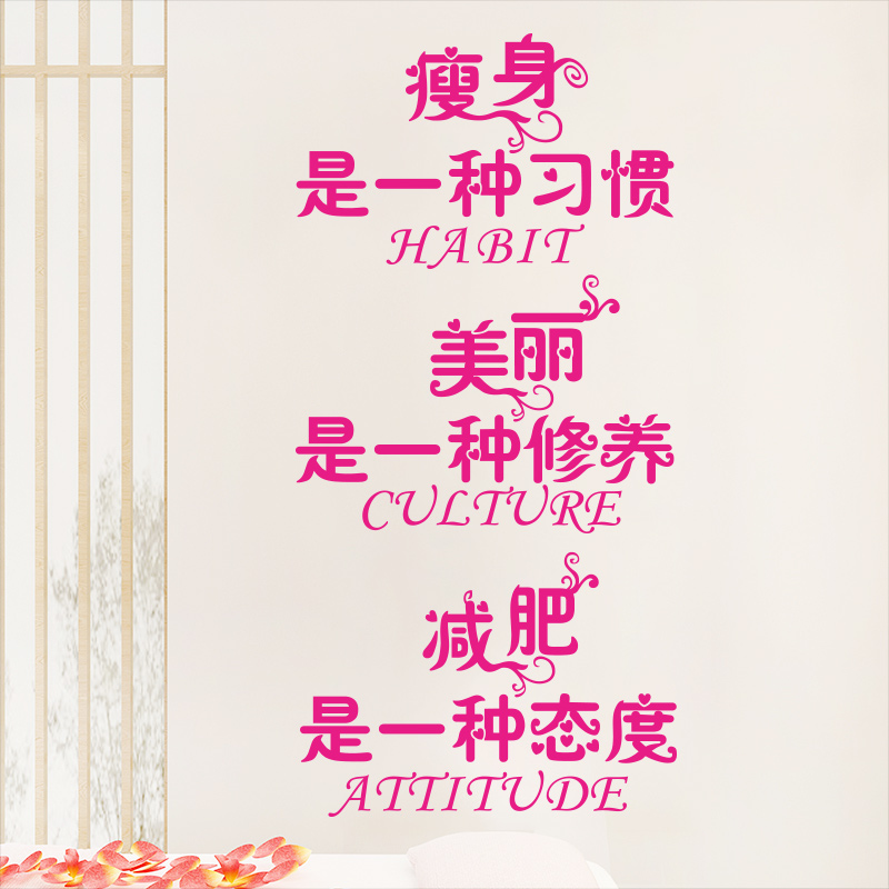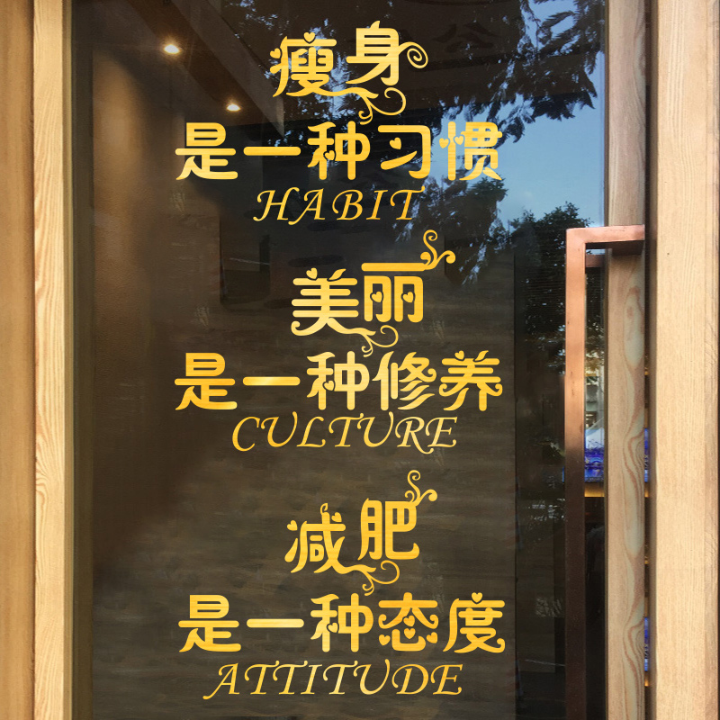 您的位置: 美容店玻璃门贴纸瘦身减肥墙面装饰励志贴画瑜伽馆健身房标语墙贴