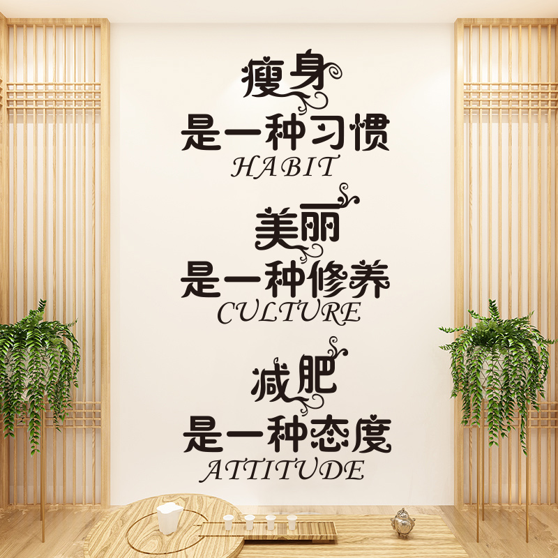 美容店玻璃门贴纸瘦身减肥墙面装饰励志贴画瑜伽馆健身房标语墙贴