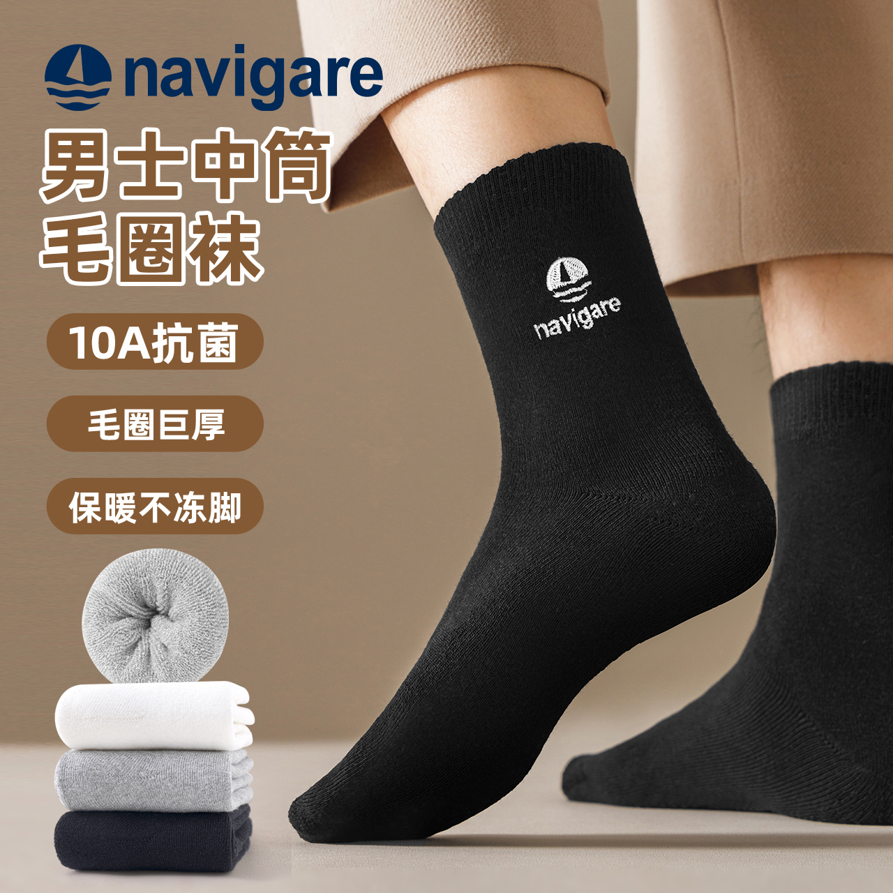 【3双装】超级火爆的Navigare意大利小帆船,他家的品牌懂得都懂高端品质。次次都买他们家的!10A级抗菌防臭透气男士加厚毛圈中筒袜~,进口工艺,手感柔滑,吸湿透气,高端袜子不起球~趁着好价3双,速度盘它!!