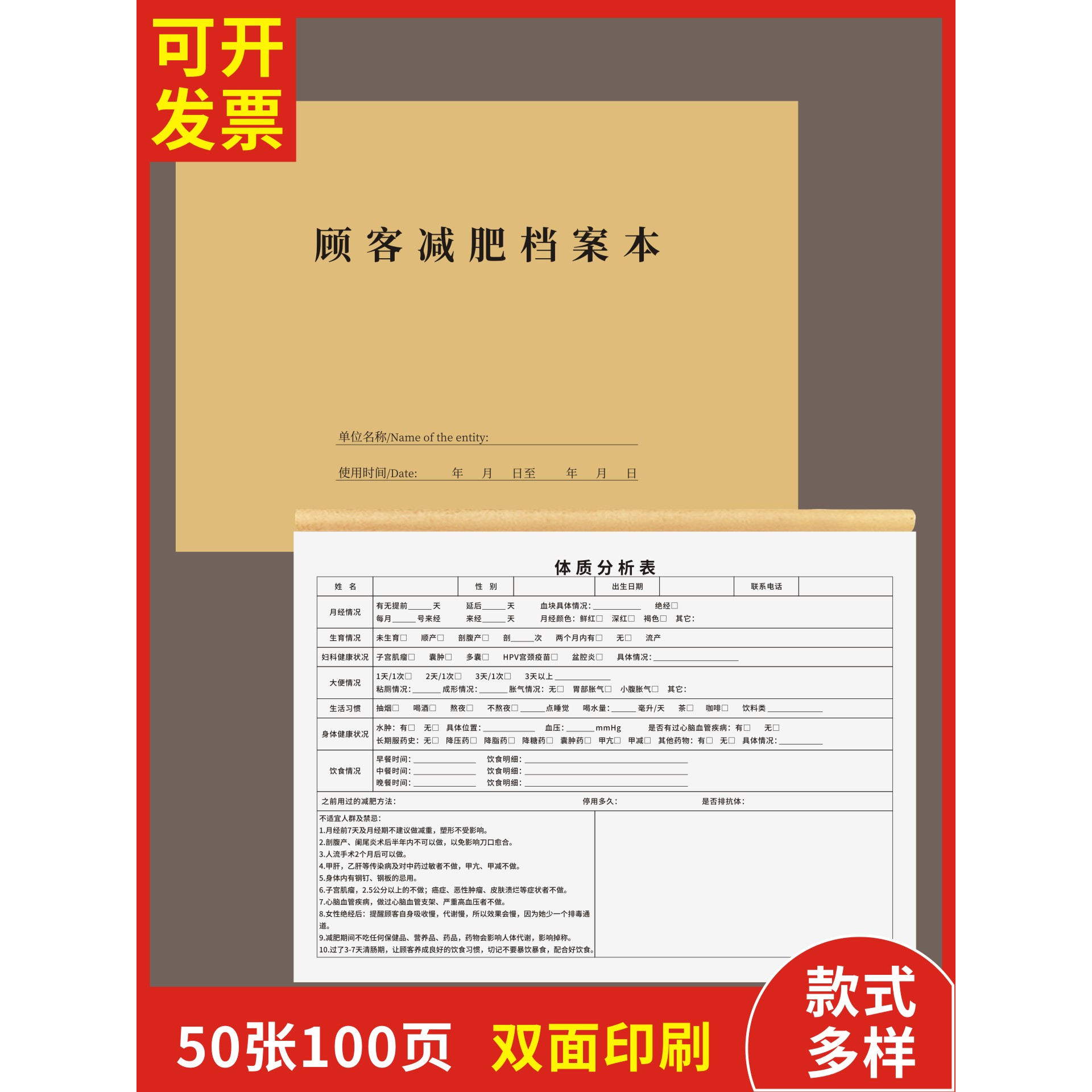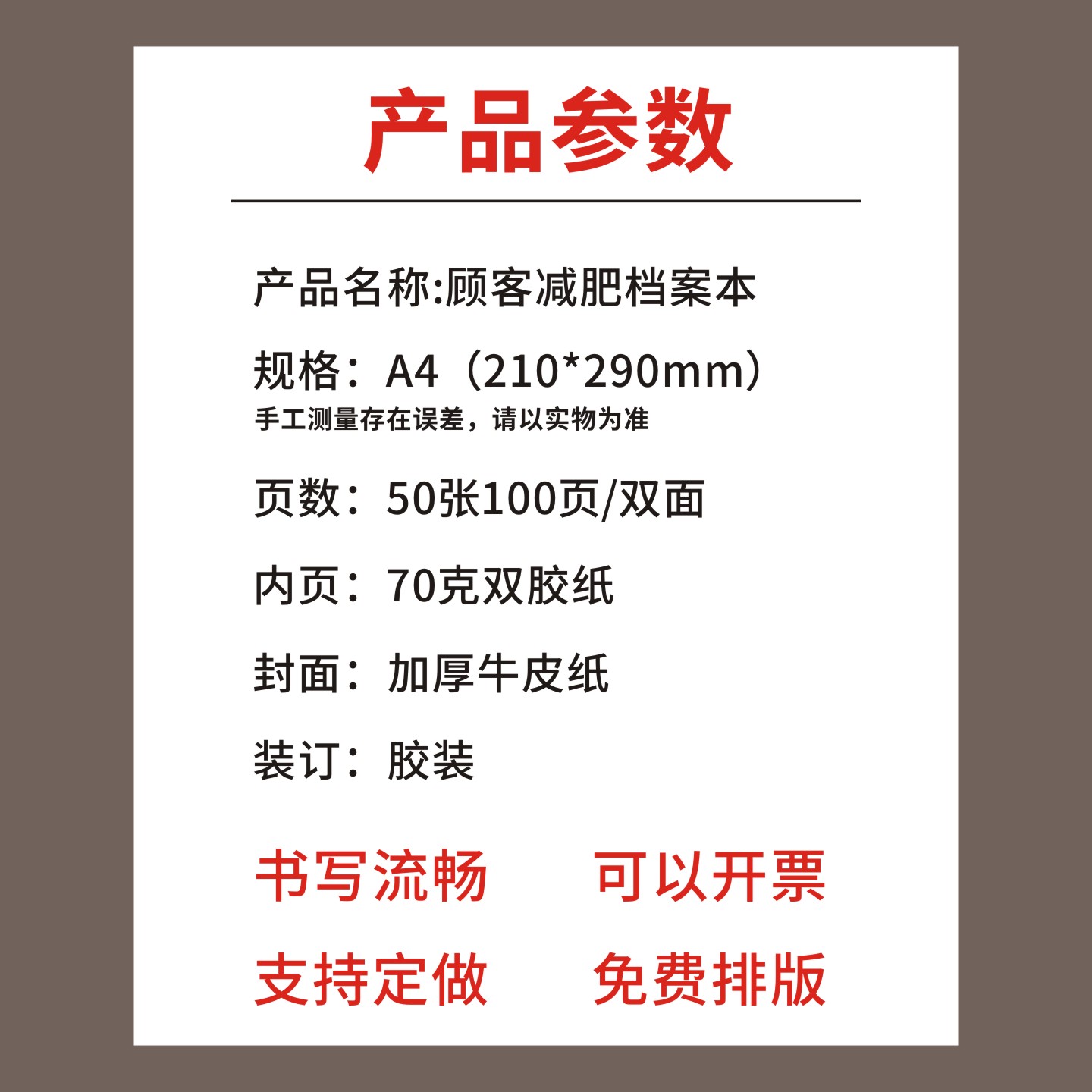 顾客减肥档案本定制订做通用版美容院减肥记录本顾客登记表顾客体重管理档案本顾客肥胖登记本减肥计划书
