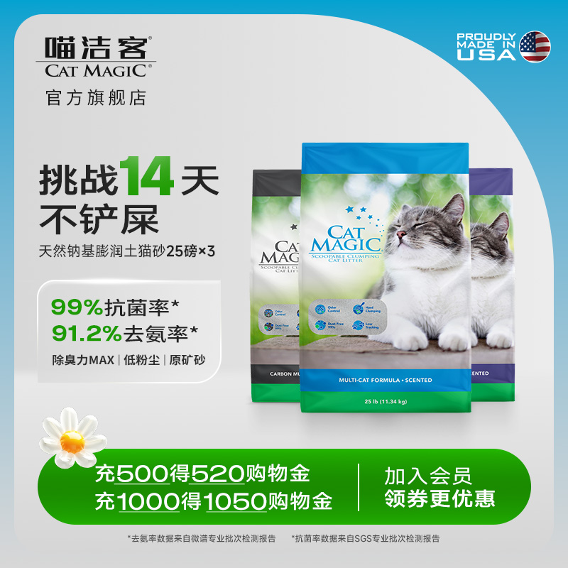 淘宝天猫喵洁客猫砂美国原装进口矿砂钠基矿石抗菌去氨膨润土猫砂25磅*3袋优惠券折扣价格–彩云间