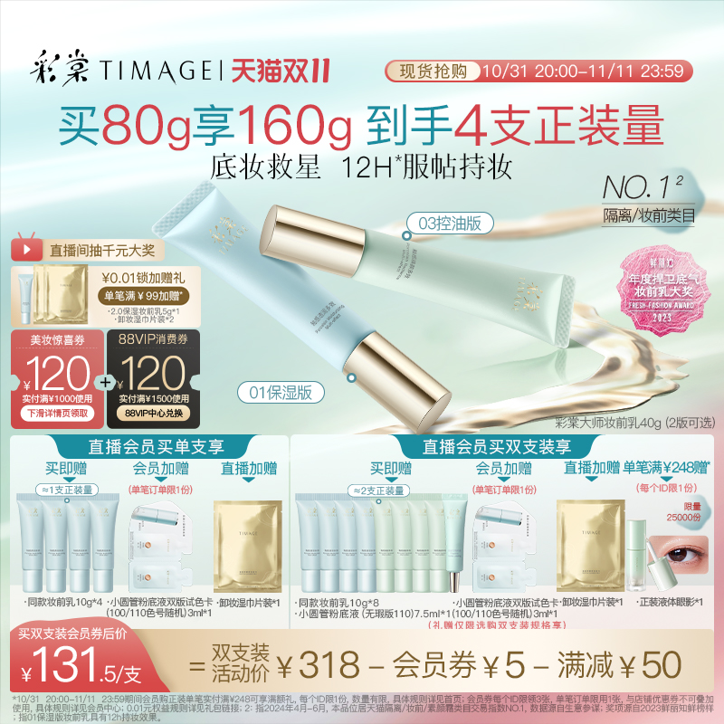 淘宝天猫【双11狂欢】彩棠TIMAGE妆前乳隔离霜打底保湿控油服帖不卡粉优惠券折扣价格–彩云间