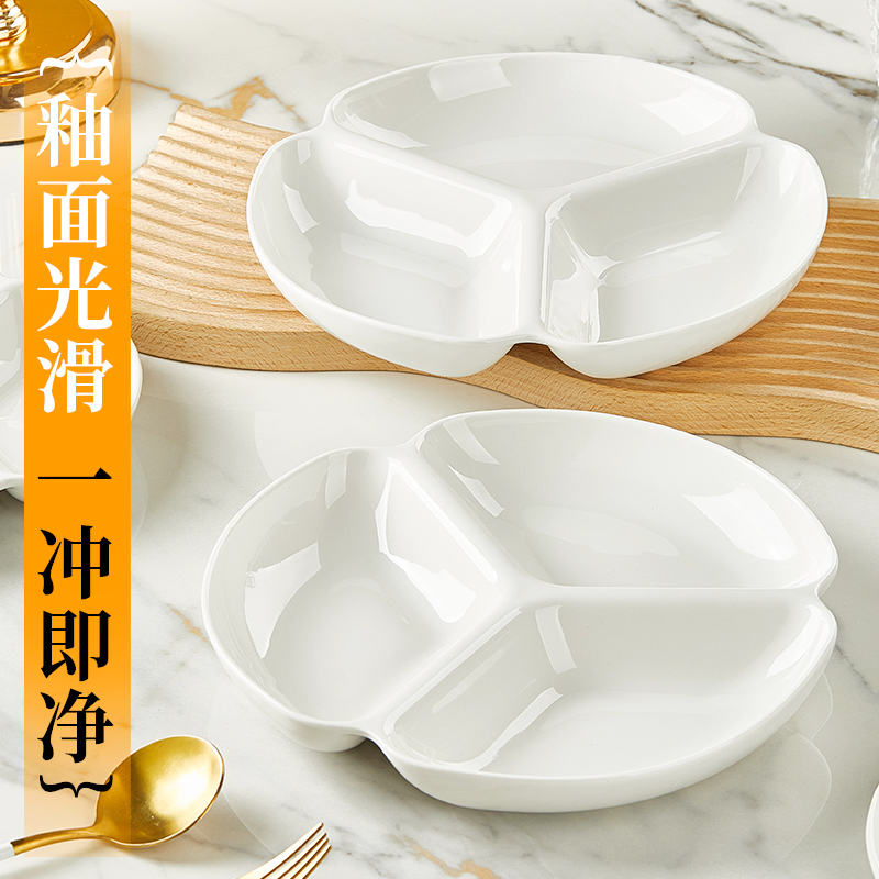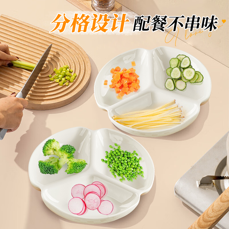 您的位置: 纯白陶瓷分格餐盘可蒸可微波三格盘子家用减肥专用减脂分格备菜盘
