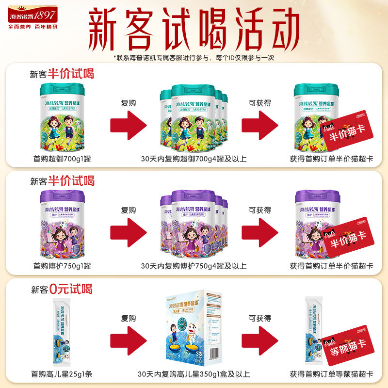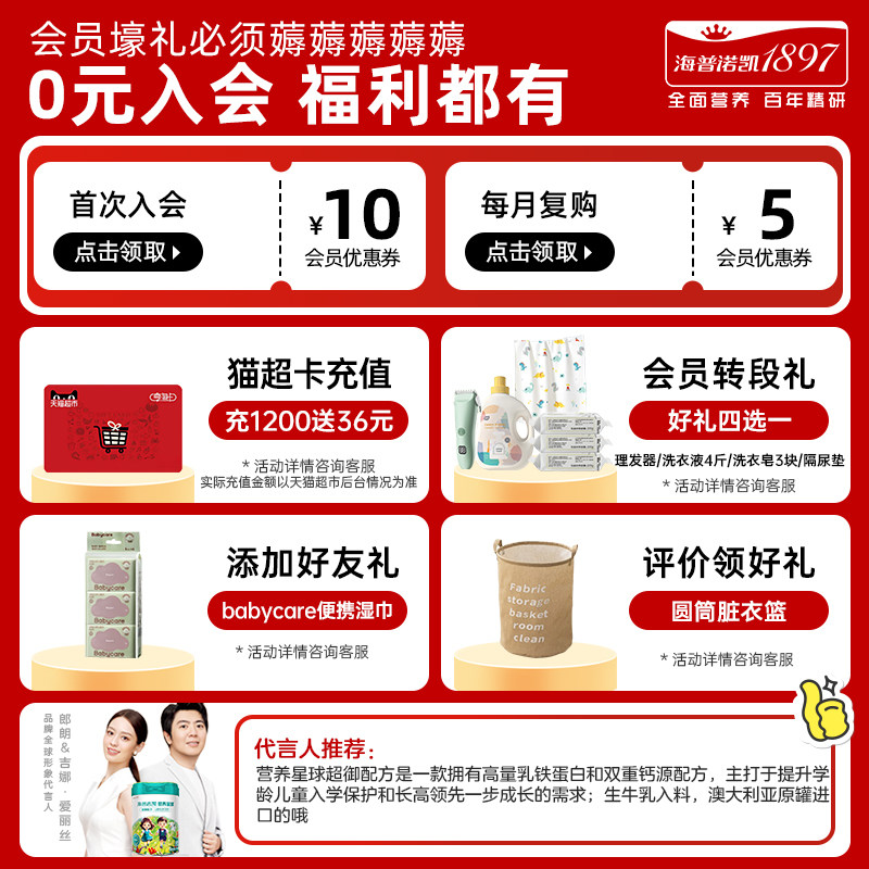 淘宝天猫海普诺凯1897营养星球超御儿童学生配方奶粉700g*6罐优惠券折扣价格–彩云间