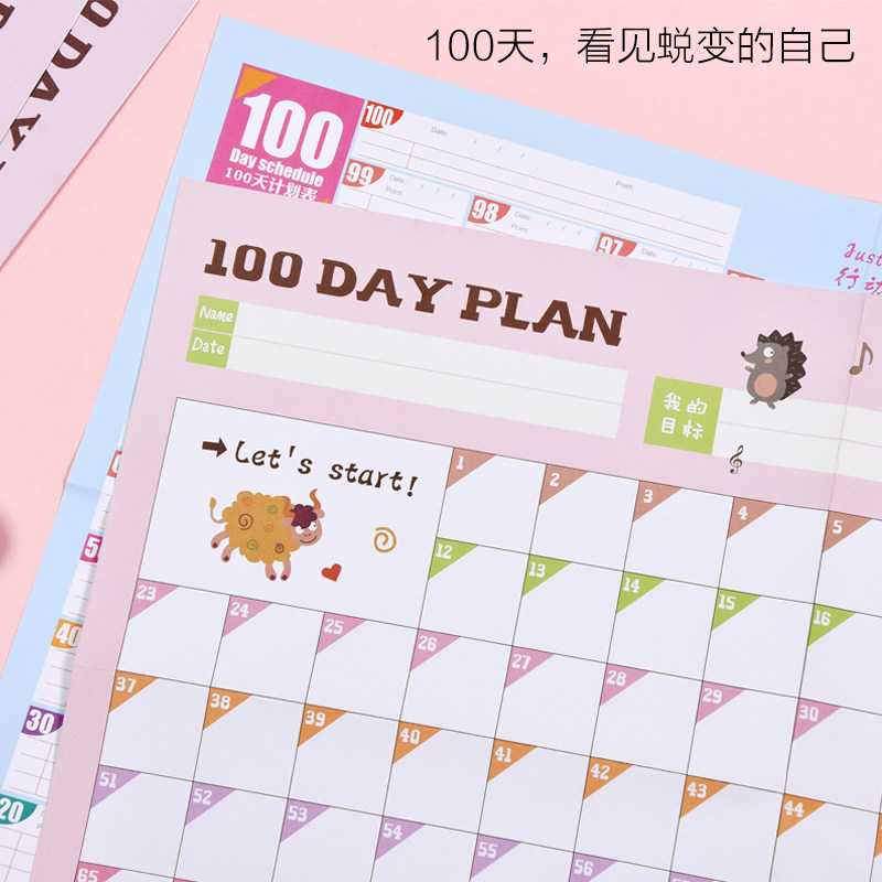 您的位置: 纸老虎100天计划表墙贴减肥自律好习惯学习课程表工作记录日程表