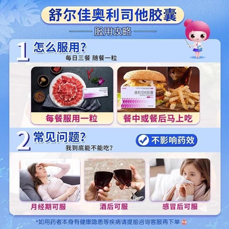 舒尔佳奥利司他胶囊 0.12g 百亿补贴官方正品 减肥减脂肥胖瘦肚子