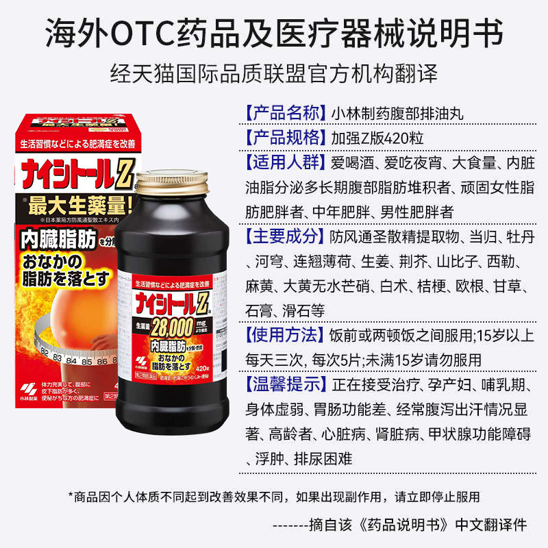 日本进口小林制药排油丸腹部减脂丸加强版减肥药燃烧脂肪420粒
