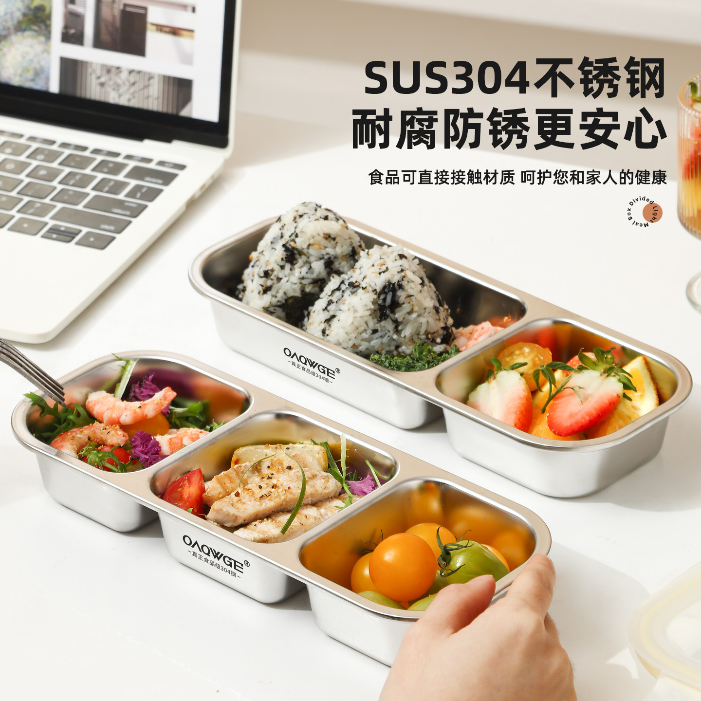 加厚304不锈钢分格饭盒轻食迷你减脂餐减肥定量便当盒微波炉加热