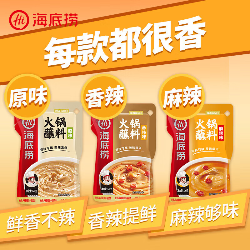 多种口味任选,海底捞火锅蘸料,舌尖美味尽享,麻辣&花生芝麻双拼,体验不一样的味道