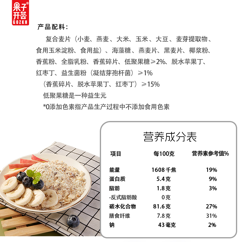 您的位置: 果子开荟香蕉苹果椰奶益生菌燕麦片早餐即食冲饮营养速食水果麦片
