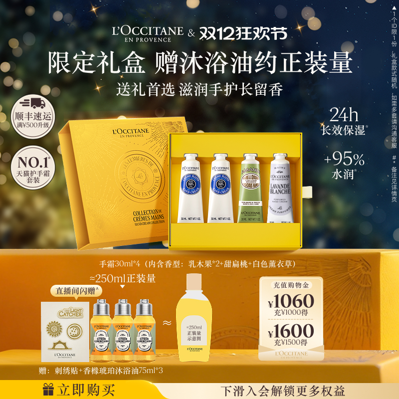 您的位置: 【圣诞礼物】欧舒丹4支护手霜套装乳木果甜扁桃保湿滋润留香冬季