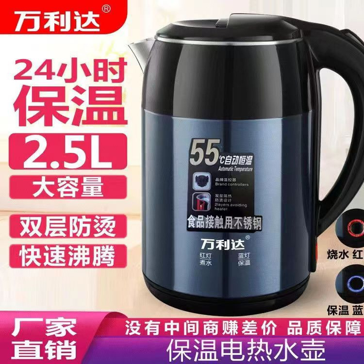 您的位置: 万利达大容量恒温电热水壶家用2.5L不锈钢304保温全自动煮烧水壶