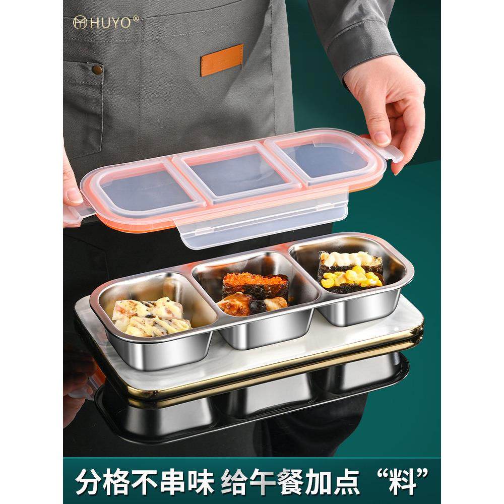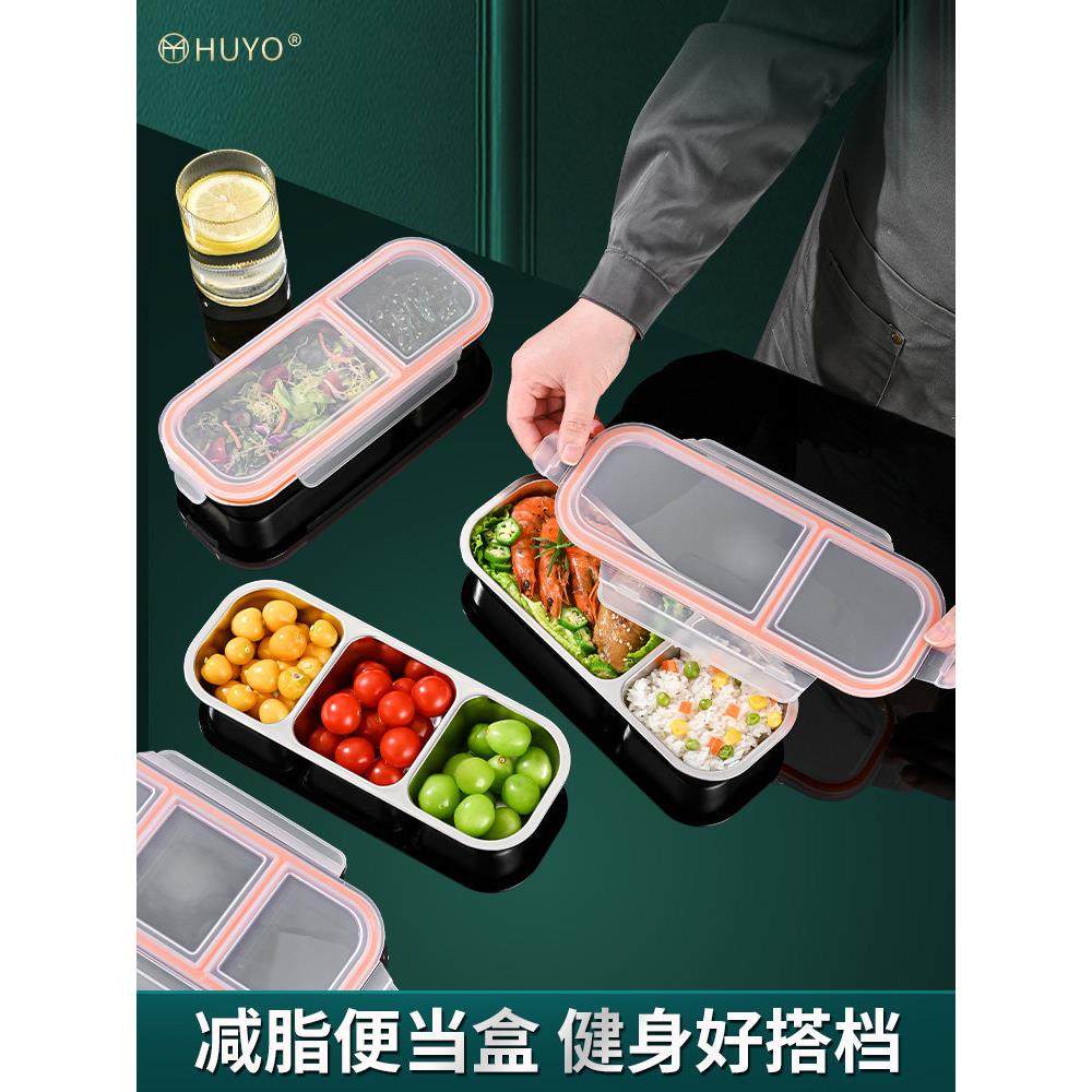 轻食饭盒三分格密封携带减肥定量小分装便当盒304不锈钢水果保鲜