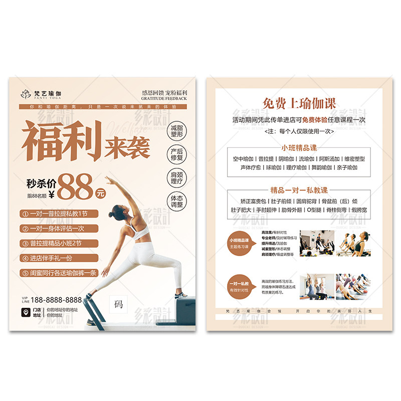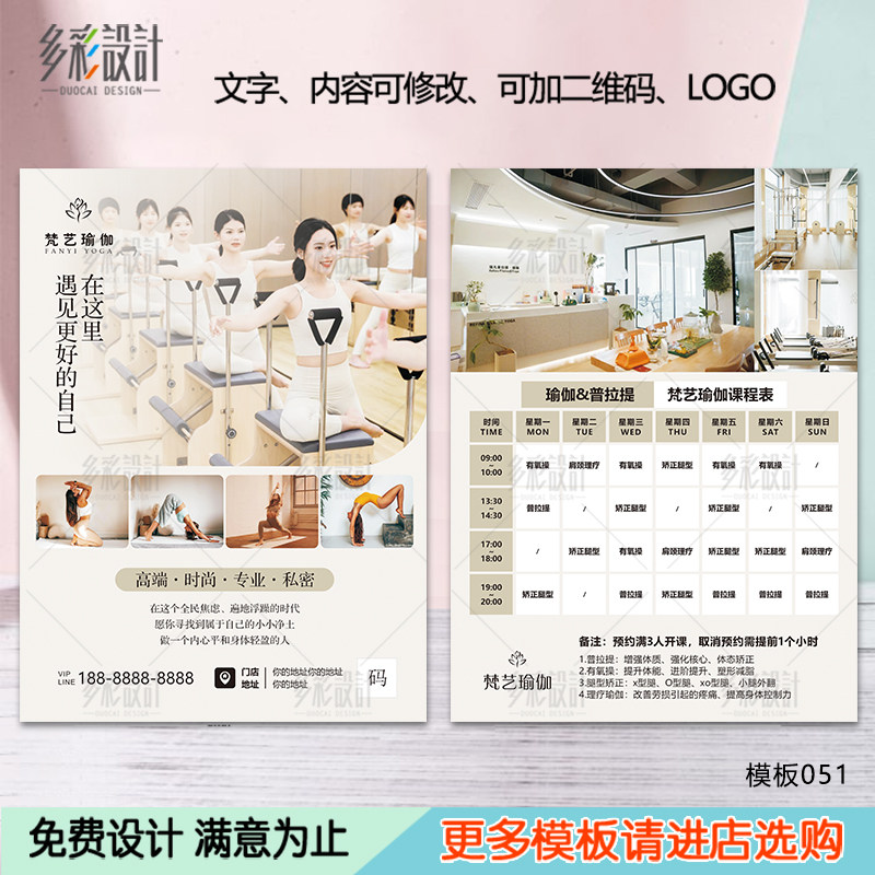 淘宝天猫瑜伽馆会员招募DM单页普拉提健身减脂减肥塑型维密彩页宣传单A4A5优惠券折扣价格–彩云间