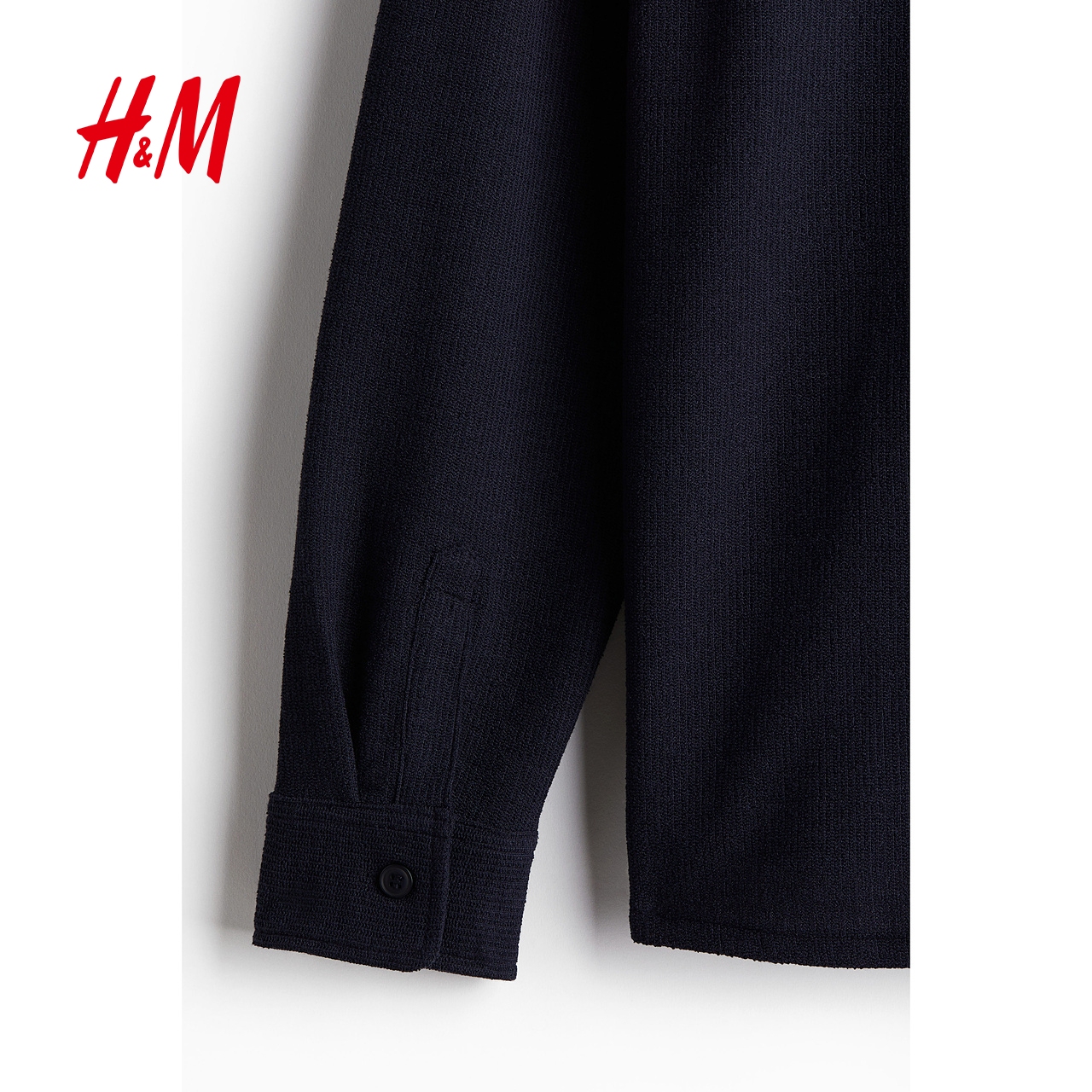 HM男装衬衫25秋季长袖宽松版纹理感梭织翻折领衬衣1232515