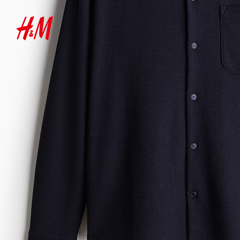 您的位置: HM男装衬衫25秋季长袖宽松版纹理感梭织翻折领衬衣1232515