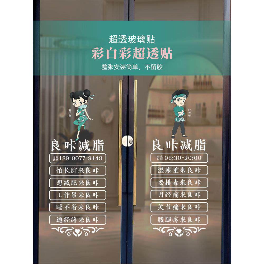 良咔玻璃贴纸美容院减肥瘦身店养生馆门贴装饰画营时间贴定制