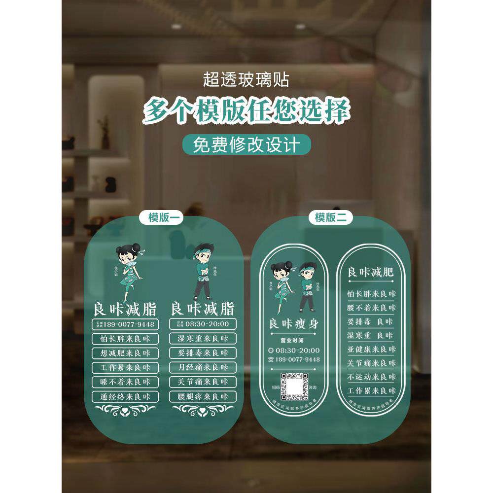 淘宝天猫良咔玻璃贴纸美容院减肥瘦身店养生馆门贴装饰画营时间贴定制优惠券折扣价格–彩云间