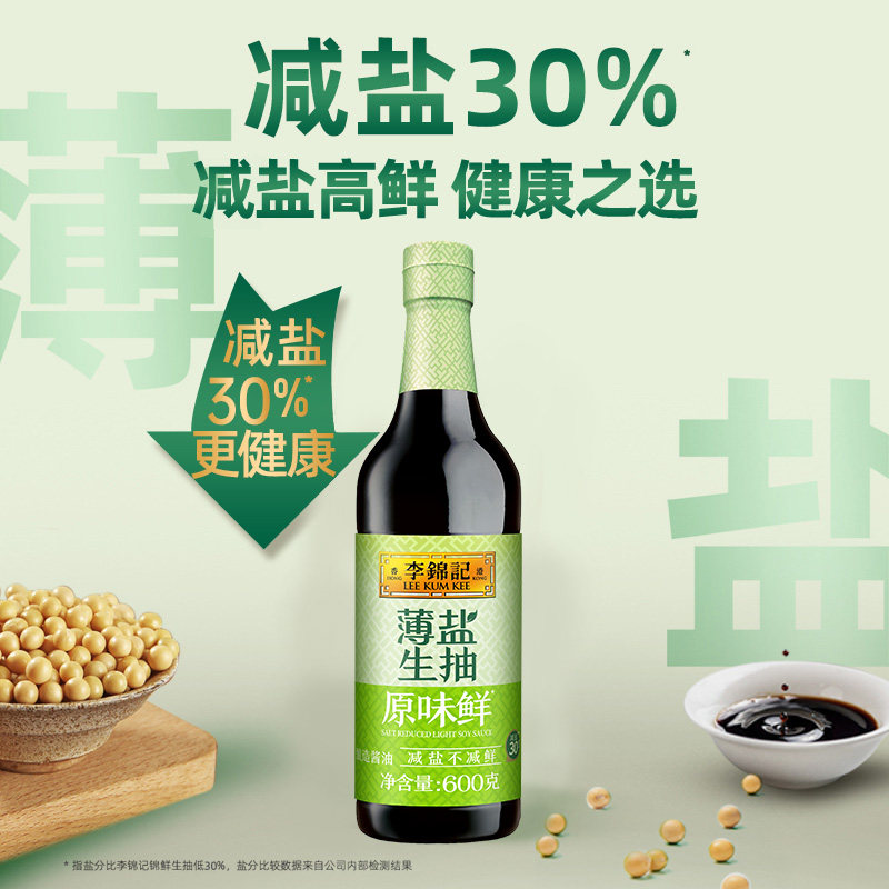 您的位置: 【10点抢】李锦记薄盐生抽原味鲜600g*2(PET瓶)