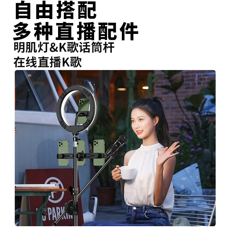 > 手机直播支架补光灯多机位全套主播户外自拍落地三脚架