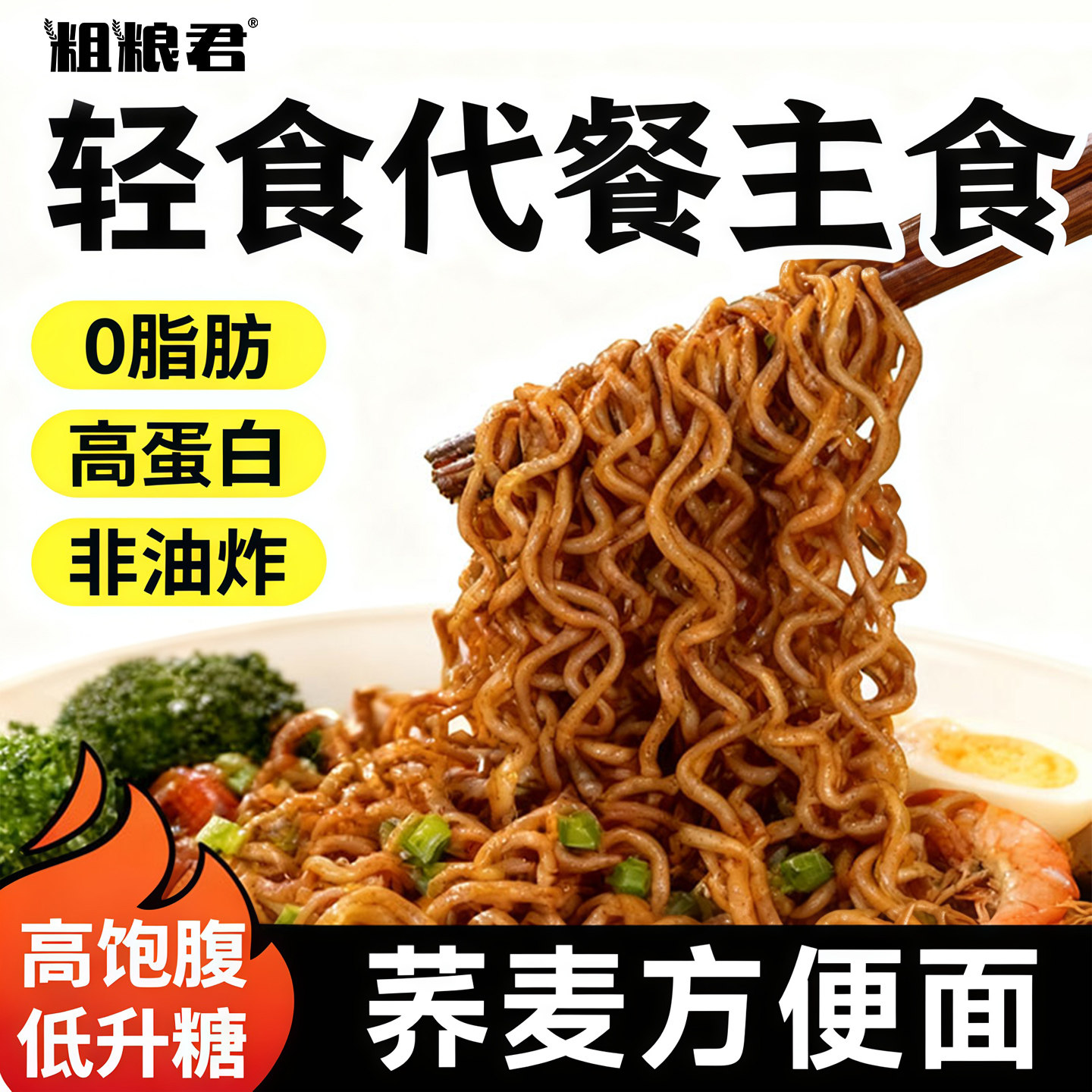 > 荞麦面方便面减低0脂全麦粗粮代餐主食非油炸免煮拌面泡面带料包