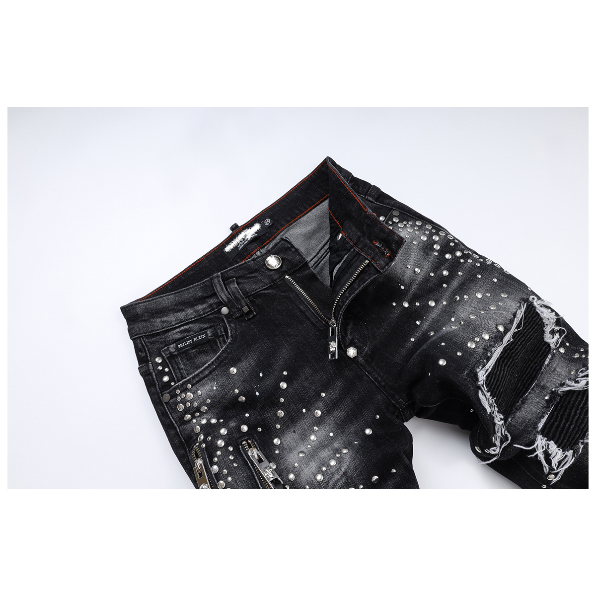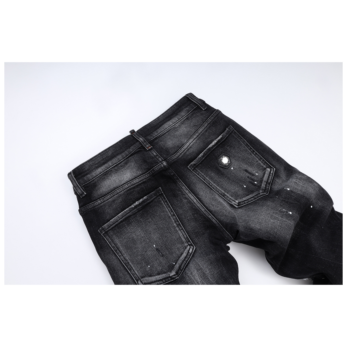 您的位置: D Jeans Skinny Ripped Jeans 美式高街铆钉破洞修身男裤牛仔裤子
