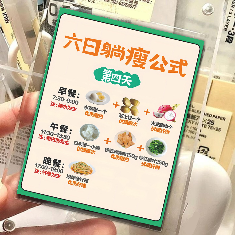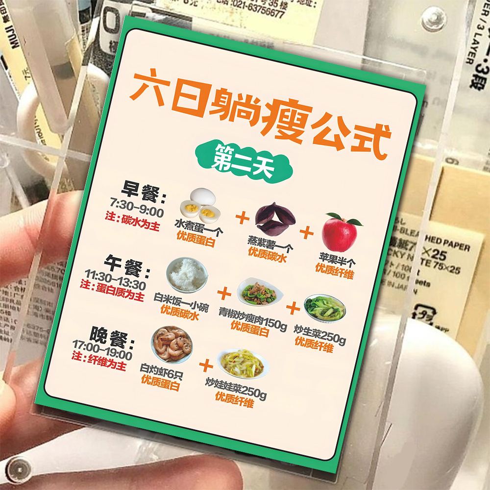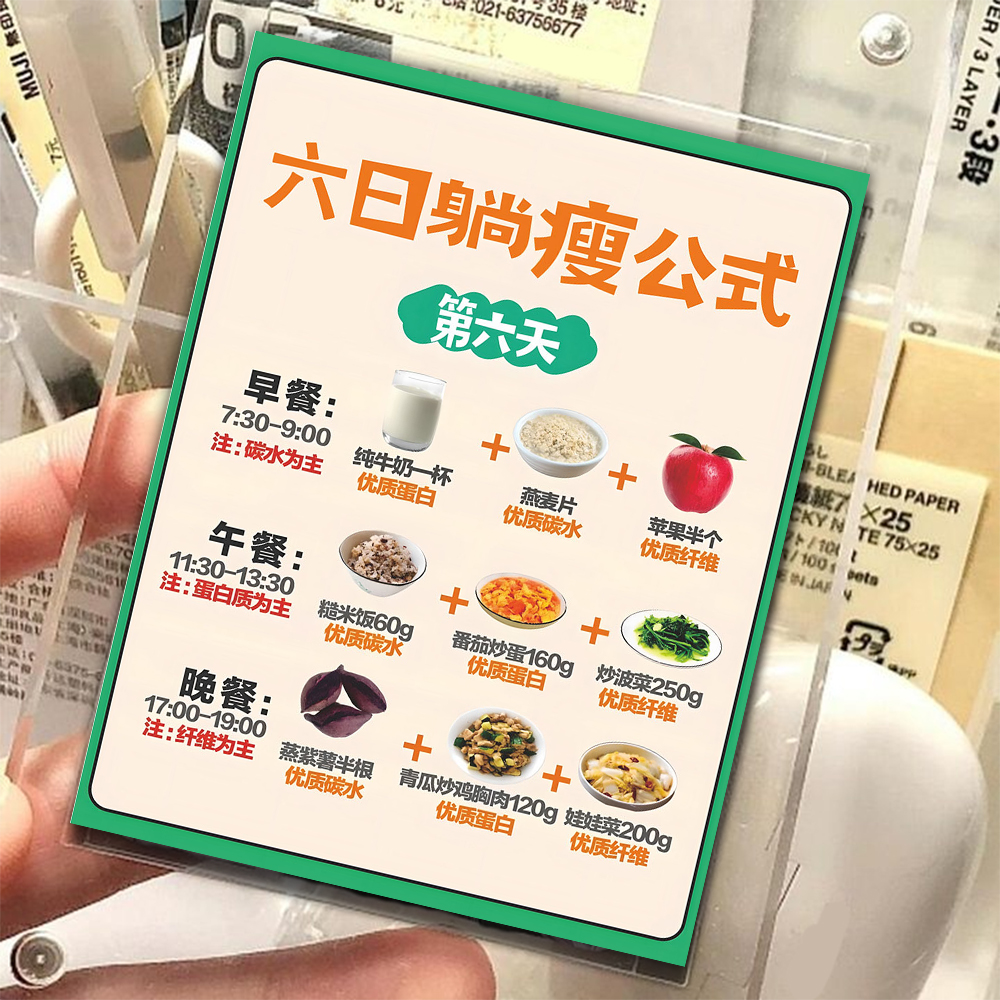 18张食堂减肥食谱拍立得小卡学生党减肥六日躺瘦公式合理饮食卡片