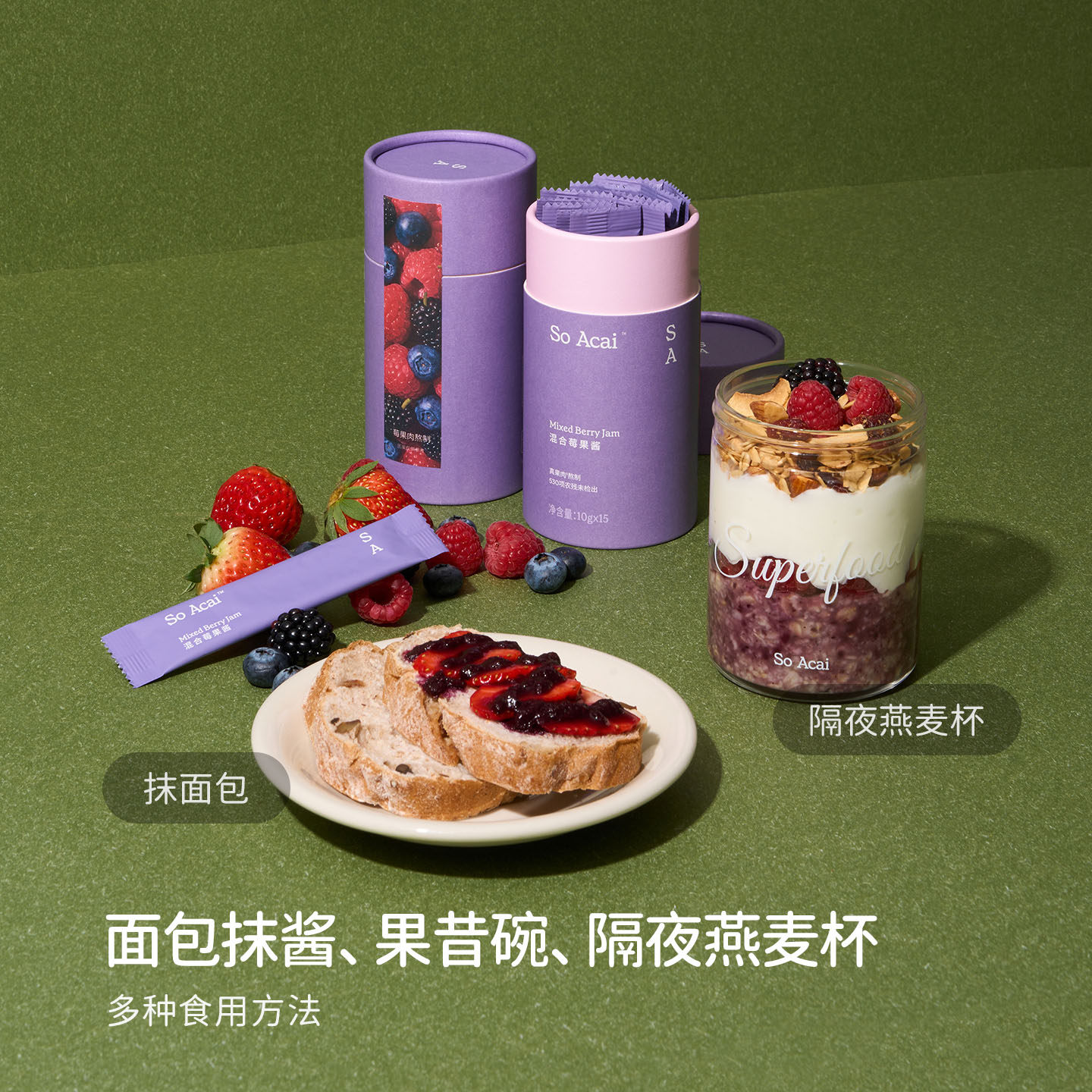 soacai混合莓果酱独立包装草莓蓝莓酱面包酱燕麦片酸奶碗配料树莓