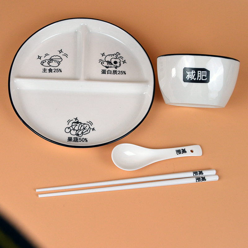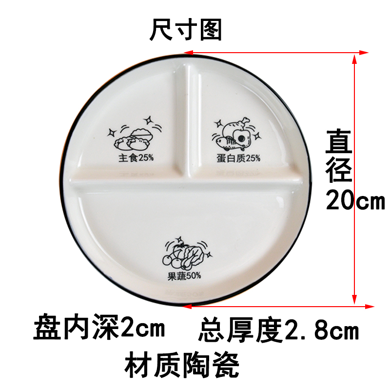 您的位置: 餐盘子三隔8英寸陶瓷盘单人家用分格减肥健身瘦身定量分餐盘刻字