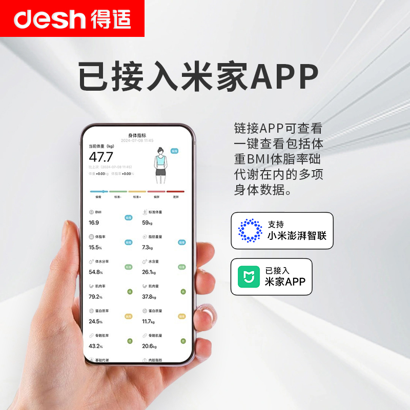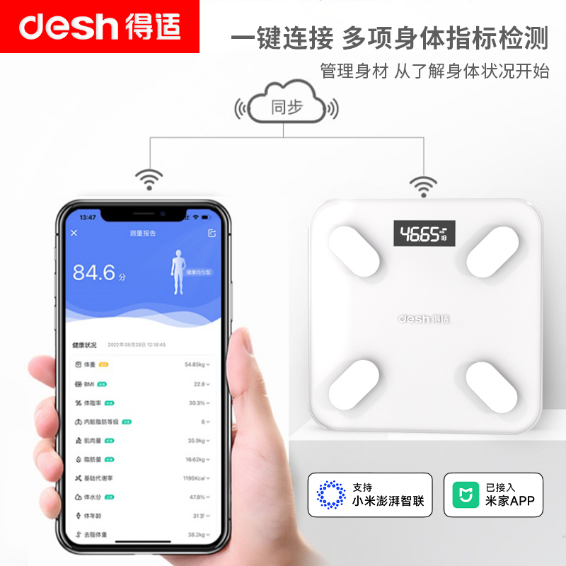> 得适体重秤家用高精准称重健身减肥专用智能体脂称宿舍小型电子秤