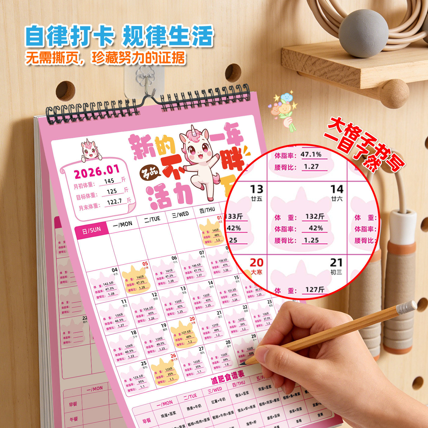 减脂月历减肥打卡挂历日历体重记录体重打卡本自律打卡记录体重