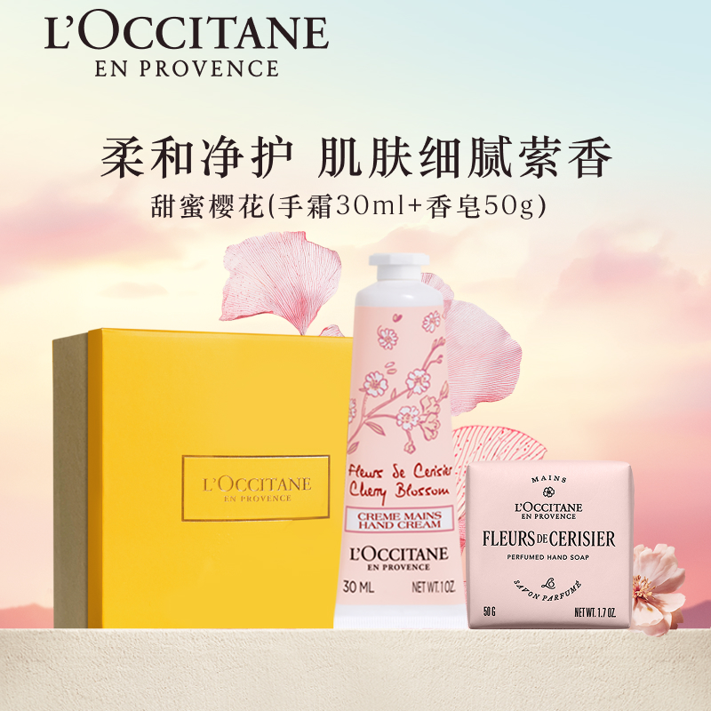 > 欧舒丹樱花手霜+樱花香皂套装水润养肤补水保湿滋润呵护留香送礼