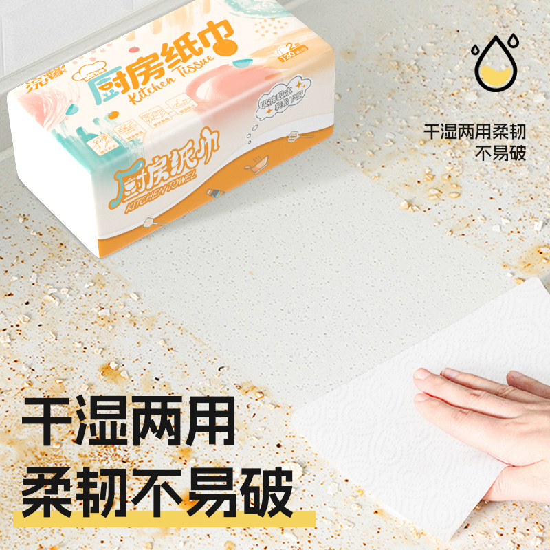 > 浣馨白色厨房抽纸2层120抽*3包大尺寸厨房专用纸巾吸水纸卫生纸