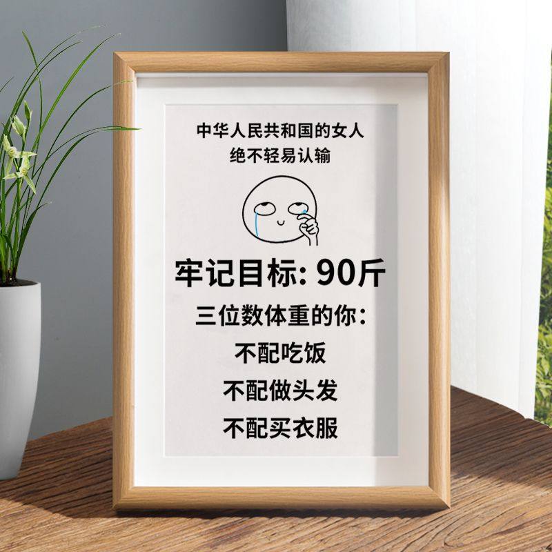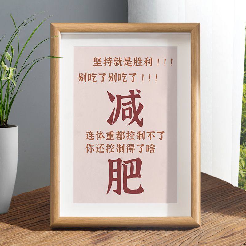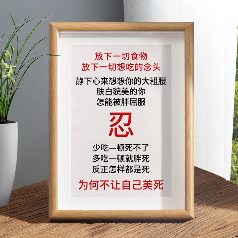 您的位置: 饿了喝水馋了扇嘴自律励志木质相框摆件减肥监督桌面装饰书法摆台
