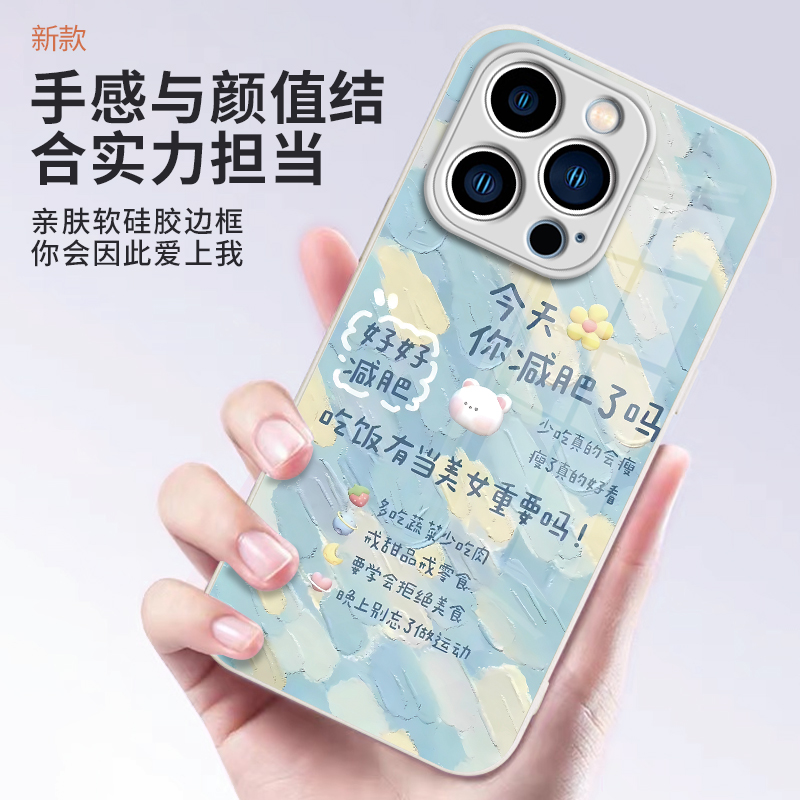 今天减肥了吗手机壳适用iPhone16小米15华为pura70女款mate60新款iPhone14小众iqoo13高级感12自律11油画风套