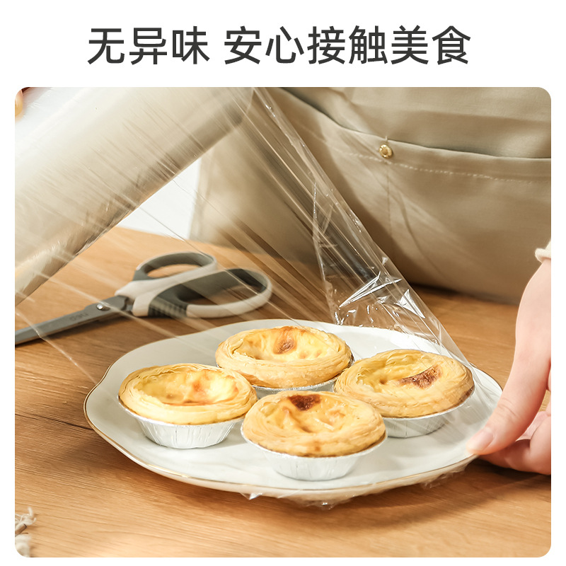 滑刀式保鲜膜,单指轻滑,自由裁剪,隐藏滑刀,不易伤手。食品级PE材质,安全又放心。蔬果保鲜,熟食密封,保留食物原味,不易串味更健康