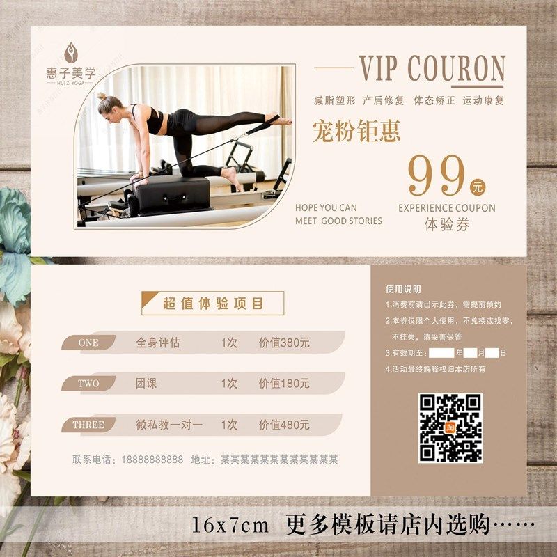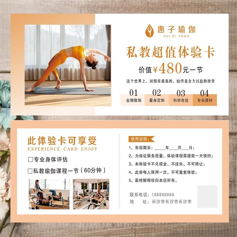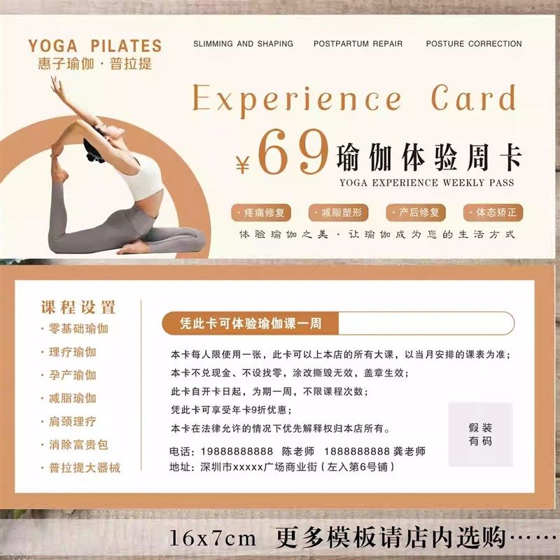 瑜伽普拉提健身产后修复健康体验券闺蜜卡拓客卡地推团课减肥塑形