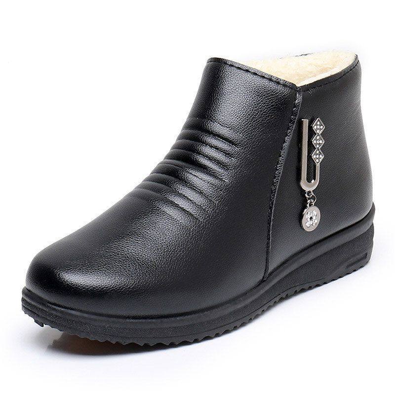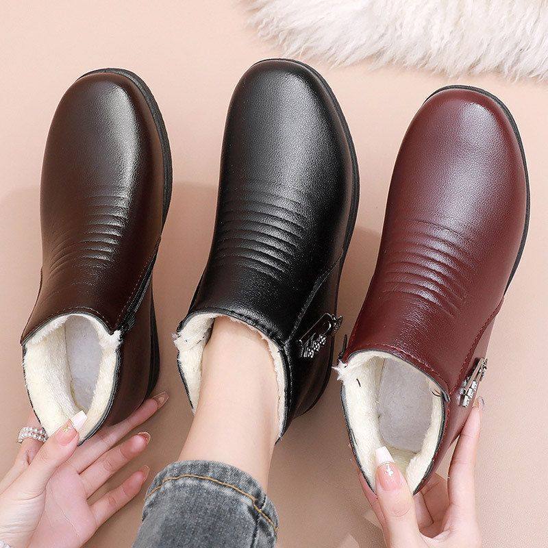 您的位置: 冬季妈妈鞋老人棉鞋软底中老年短靴女加绒保暖靴子平底中年棉皮鞋