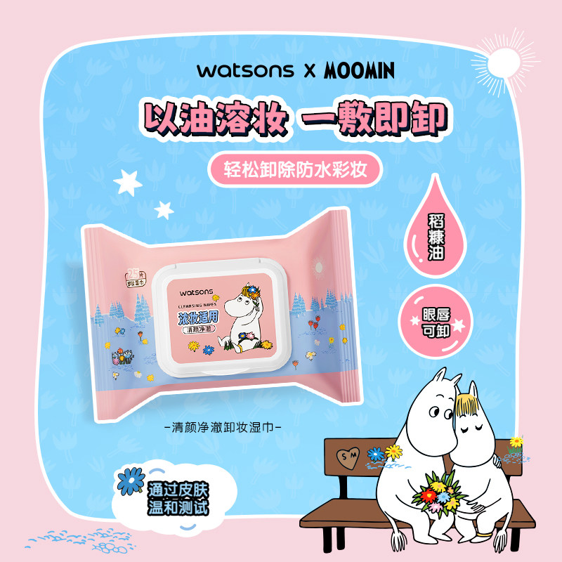 屈臣氏温和卸妆亲肤一次性卸妆巾便携式湿巾25片*6 姆明联名