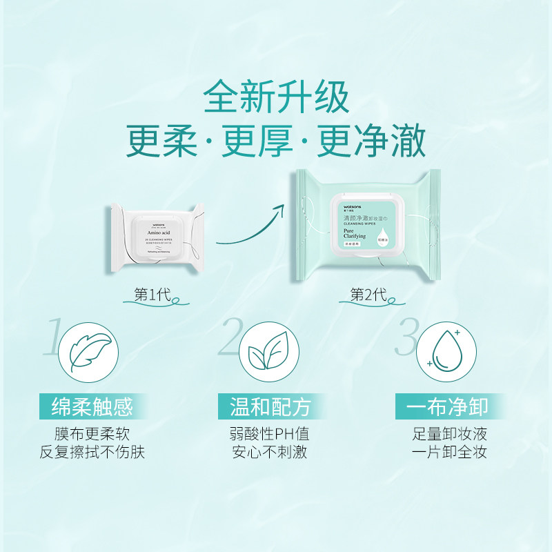 【屈臣氏官方旗舰店,叠加拍三件七五折,官方立减21.3元超级给力!支持支付宝闪购】透明质酸卸妆湿巾组合,水润净卸,一抹即卸,胶束洁净技术,水润不拔干,口碑超赞,粉丝力荐!【赠运费险】